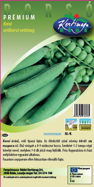 Korai érésű, velő típusú fajta. Az élénkzöld színű növény 60-65 cm magasra nő. Első virágait a 8-9 nóduszon hozza. Ízenként 1-2 tompa végű hüvelyt nevel, melyben 7-8 mag fejlődik.