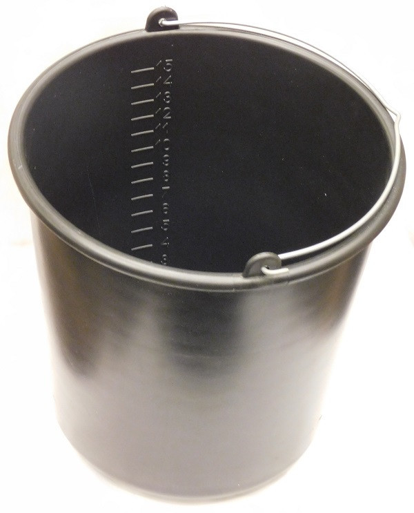 Regranulált (R) műanyagból készült erős falú, jó minőségű,16 literes vödör.