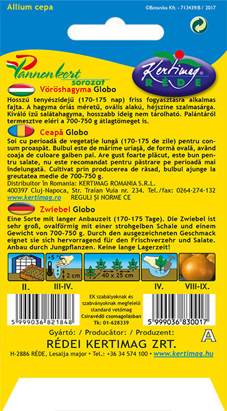 Vetés: II. hó, szabadföldön III-IV. hó, 25 x 40 cm távolságra.