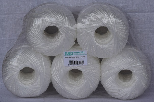 5 db 400 grammos, fehér színű polipropilén (PP) anyagbólkészült zsineg.
