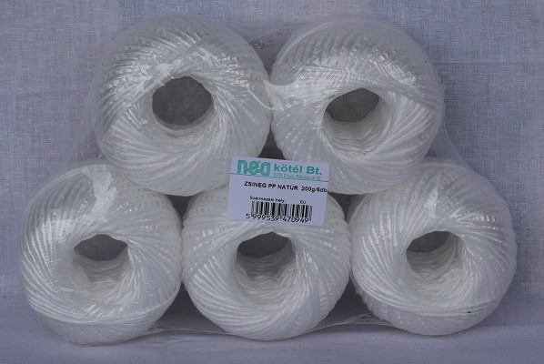 5 db 0,2 kg-os, polipropilén (PP) alapanyagból készült fehérzsineg.