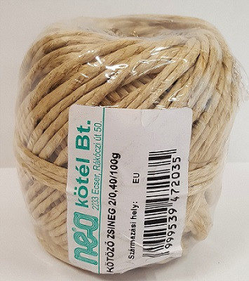 100 % natúr alapanyagból készült kötöző kenderzsineg.Többcélú felhasználhatósága és kedvező ára miatt kedvelt termék.