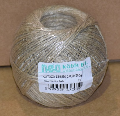 100 % natúr alapanyagból készült kötöző kenderzsineg.Többcélú felhasználhatósága és kedvező ára miatt kedvelt termék.